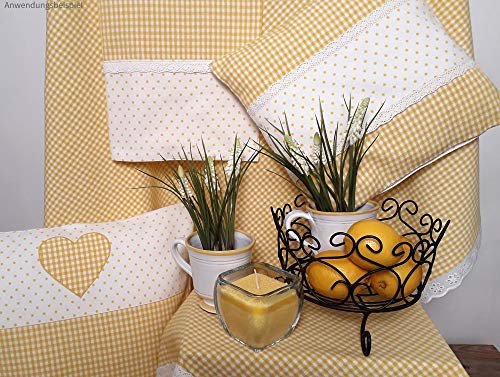 Kissenüberzug / Kissenhülle HANNE Karo & Punkte Bordüre Landhaus-Stil in gelb