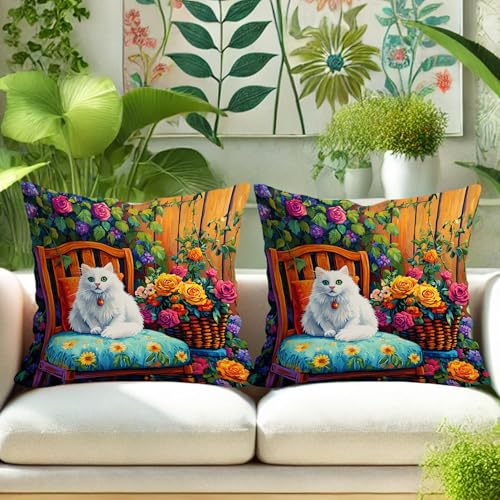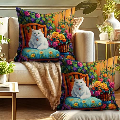 Kissenbezüge über Katzen-Antrieb, dekorative Dekokissen, Frühlings-/Outdoor-Kissen statt dessen Zuhause, Sofa, Raumdekoration, 50,8 x 50,8 cm, 2 Stück