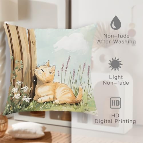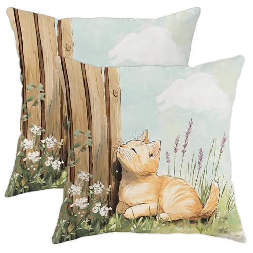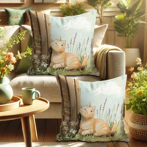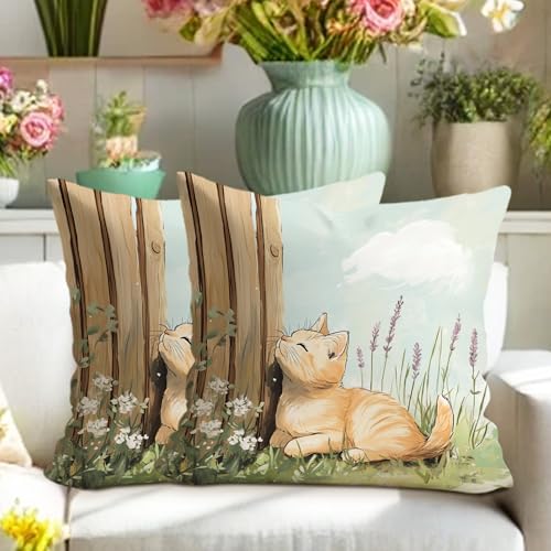 Kissenbezüge via Katzen-Leitgedanke, dekorative Dekokissen, Frühlingskissen, Bauernhaus-Dekor-Kissenbezüge statt dessen Zuhause, Sofa, Bett, Couch, 45,7 x 45,7 cm, 2 Stück