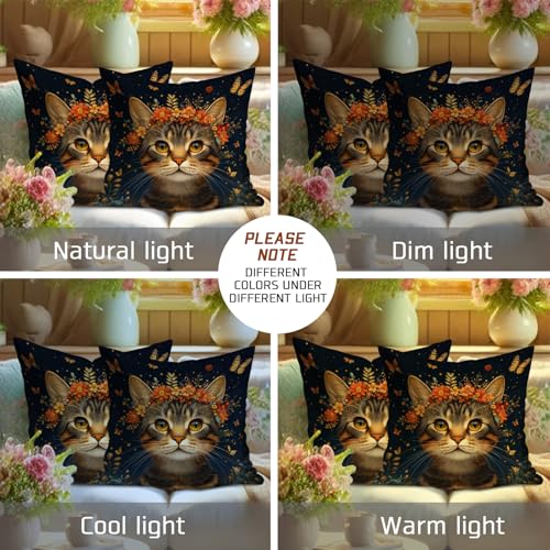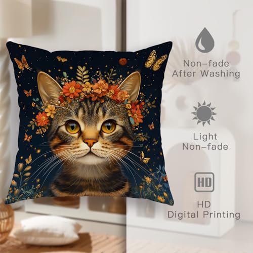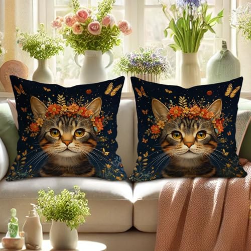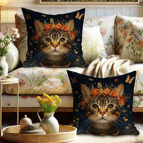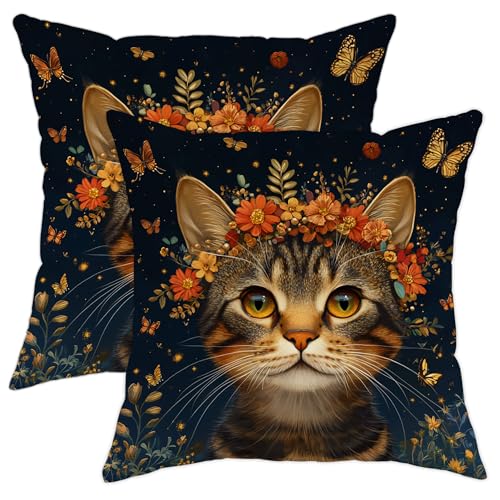 Kissenbezüge mit Katzen-Motiv, dekoratives Dekokissen, Herbst-Natur-inspirierte Kissenbezüge für Zuhause, Sofa, Bett, Couch, 50,8 x 50,8 cm, 2 Stück