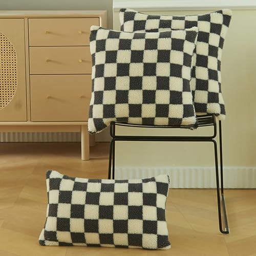 HANDGEWÄHLTER STOFF: Hergestellt aus Sherpa-Fleece mit Retro-Karomuster auf der Vorderseite mit Schachbrettmuster, die Ihnen ein kuscheliges Emotion mit weichem Griff.