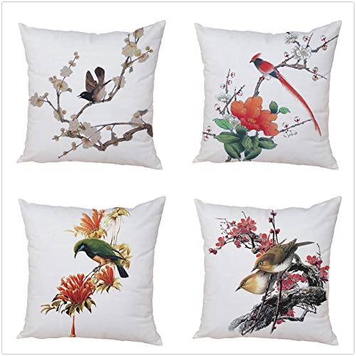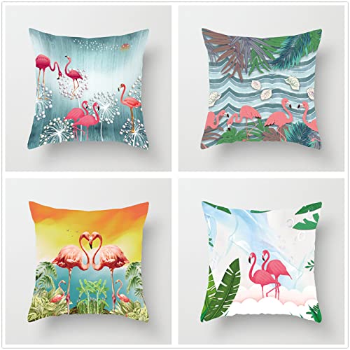 Kissenbezug 100x100cm 4er Set,Tropischer Flamingo Dekoration Kissenbezüge Outdoor kissen flax Dekokissen mit Verstecktem Reißverschluss für Schlafzimmer Sofa Stuhl Bett Garten Cafe Haus Dekoration