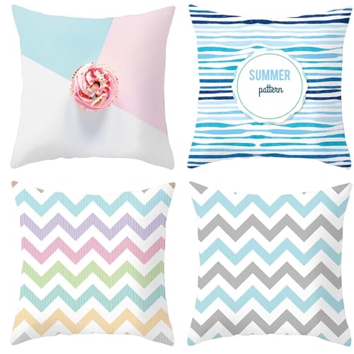 Kissenbezug 30x30cm 4er Set,Karierte Streifen Dekoration Kissenbezüge Outdoor kissen Samt Dekokissen mit Verstecktem Reißverschluss für Schlafzimmer Sofa Stuhl Bett Garten Cafe Haus Dekoration YG1069