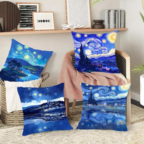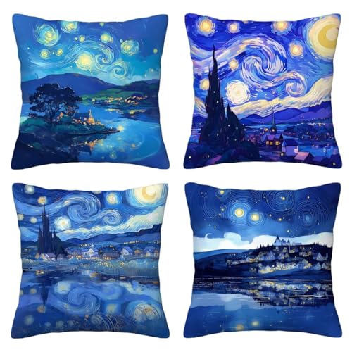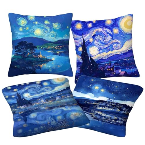 【Doppelseitiges Muster】: Neue 4 PCs Quadratkissenabdeckungen / Schalen, kein Füller oder Einsatz. Das Muster gedruckt auf beiden Seiten der Kissenabdeckung machen es einfacher für Sie, den Ort zu schmücken, den Sie mögen, können Sie es nach Wunsch platzieren, ohne nach der gemusterten Seite für Dekoration stöbern zu müssen, es ist bequemer für Sie.