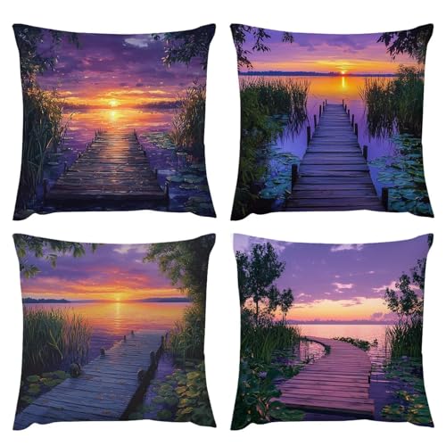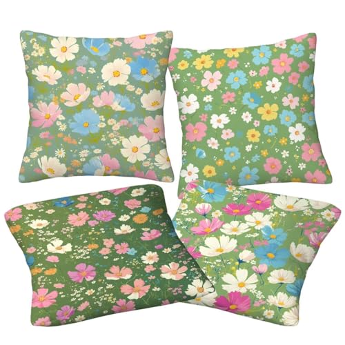 【Doppelseitiges Muster】: Neue 4 PCs Quadratkissenabdeckungen / Schalen, kein Füller oder Einsatz. Das Muster gedruckt auf beiden Seiten der Kissenabdeckung machen es einfacher für Sie, den Ort zu schmücken, den Sie mögen, können Sie es nach Wunsch platzieren, ohne nach der gemusterten Seite für Dekoration abgrasen zu müssen, es ist bequemer für Sie.