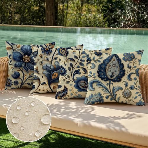 【EXQUISITES DESIGN MIT VERDECKTEM REISSVERSCHLUSS】: Die Packung enthält 4 Kissenbezüge (Kisseneinlagen nicht enthalten). Die Outdoor-Kissenbezüge verfügen über einen farblich passenden, unsichtbaren Reißverschluss für einen eleganten Look. Kissen/Füllungen lassen sich leicht in die quadratischen Kissenbezüge stecken