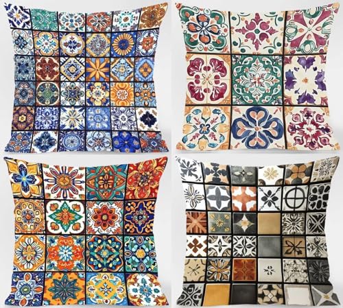 【DOPPELSEITIGES MUSTER】: 4 quadratische Kissenbezüge. Bitte respektieren Sie, dass im Kontrast dazu ein Kissenbezug, keine Füllung oder Einlage enthalten ist. Das beidseitig bedruckte Muster ermöglicht es Ihnen, den Raum nach Belieben zu dekorieren und die gemusterte Seite nicht zu durchsuchen. Das ist praktischer