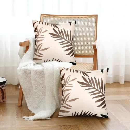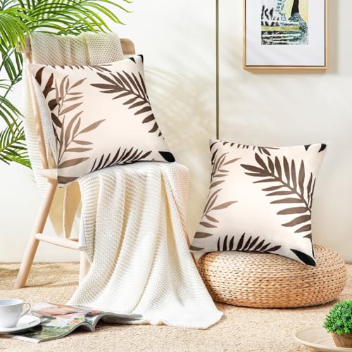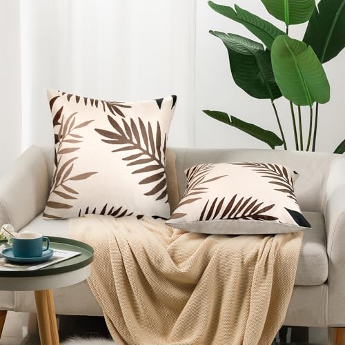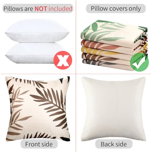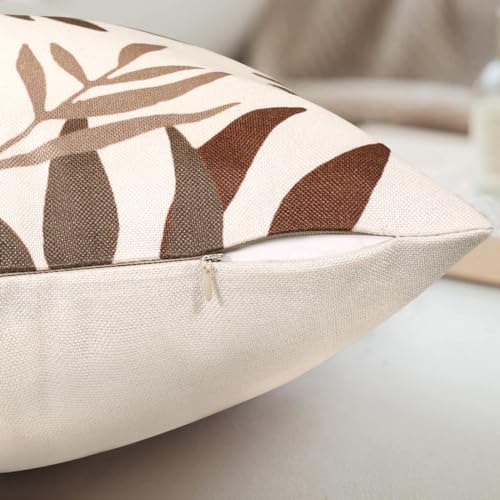 Kissenbezug 40×40 2er Set Kissenbezug Braun Blätter Polyester Kissenbezüge Natur Landhausstil Deko Kissenhülle Sofakissen Couchkissen Zierkissenbezug für Sofa Couch Schlafzimmer Wohnzimmer Garten