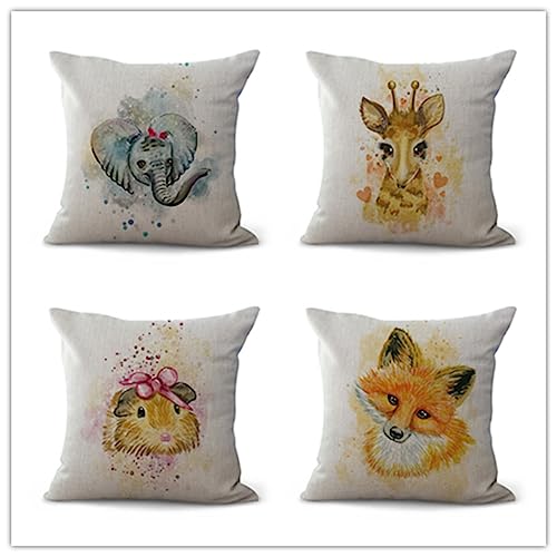 Kissenbezug 40×40 Cute Animal Print Dekokissen Set of 4 Leinen Kissenbezüge Hypoallergener Kissenbezug Pillow Cover für Sofa Gartenbett Balkon Auto Kissenhüllen