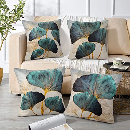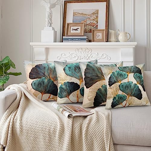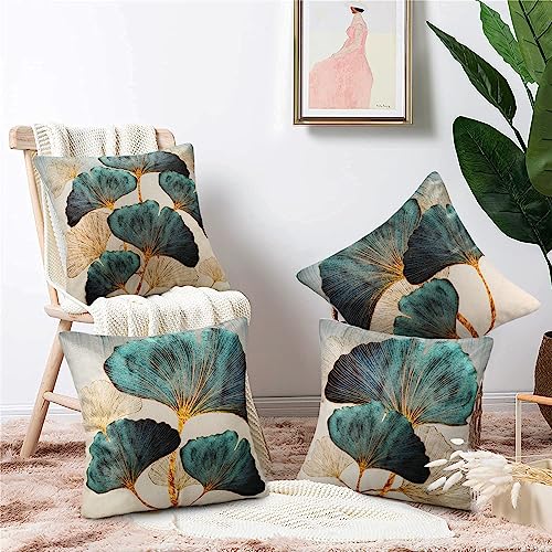 Retro Schrott Leaves: Der Kissenbezug ist mit grünen und goldenen Ginkgomustern bedruckt. Der Druckerzeugnis auf den Kissenbezügen ist außergewöhnlich klar und betriebsam. Die Farben sind außergewöhnlich satt und betriebsam. Dieser schöne Kissenbezug verleiht Ihrem gemütlichen Zuhause Frische und Vitalität und gewinnt den Eindruck Ihrer Gäste.