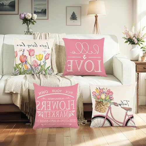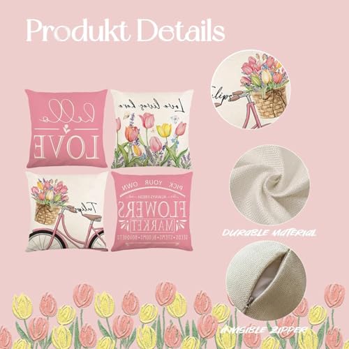 Kissenbezug 45 X 45 cm 4er Set Frühlingsdekoration Blumen Kissen 45 X 45 cm Dekoratives Frühlingskissen Frühlingsdekoration Innenraumdekoration Ästhetisches Dekokissen Milben (D, One Size)