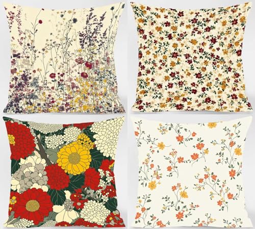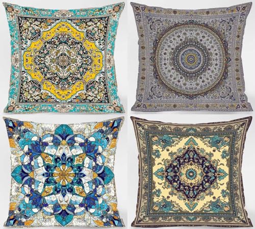 【DOPPELSEITIGES MUSTER】: 4 quadratische Kissenbezüge. Bitte würdigen Sie, dass freilich ein Kissenbezug, keine Füllung oder Einlage enthalten ist. Das beidseitig bedruckte Muster ermöglicht es Ihnen, den Raum nach Belieben zu dekorieren und die gemusterte Seite nicht zu weiden. Das ist praktischer