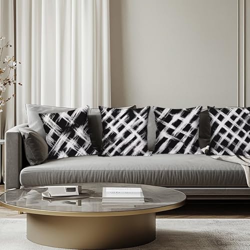 Kissenbezug 45×45 cm Abstrakt Kissenbezüge Schwarz Samt Kissenhüllen 4er Set, Quadratische Kopfkissenbezug Dekokissen mit Unsichtbarer Reißverschluss, Kissenhülle für Sofakissen Deko Geschenke G-3