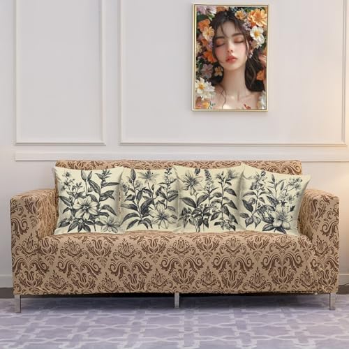 Kissenbezug 45×45 cm Natur Kissenbezüge Anlage Samt Kissenhüllen 4er Set, Quadratische Kopfkissenbezug Dekokissen mit Unsichtbarer Reißverschluss, Kissenhülle für Deko Wohnzimmer Geschenke T-14
