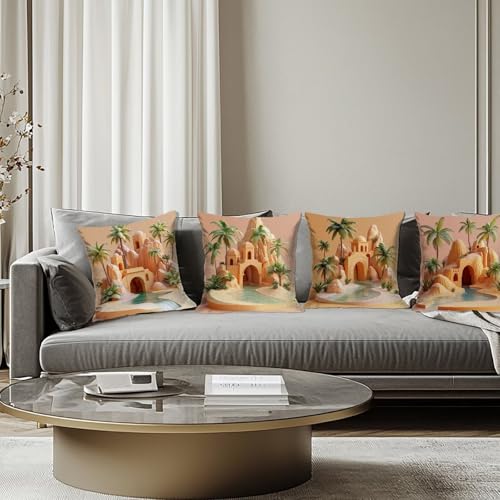Kissenbezug 45×45 cm Rosa Kissenbezüge nordisch Samt Kissenhüllen 4er Set, Quadratische Kopfkissenbezug Dekokissen mit Unsichtbarer Reißverschluss, Kissenhülle für Deko Wohnzimmer Geschenke F-80
