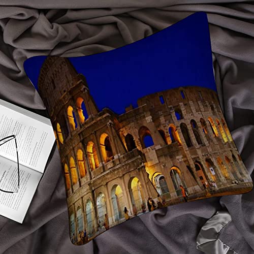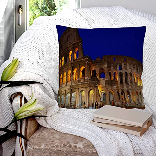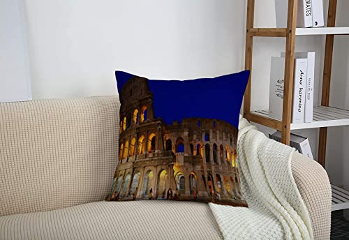 Kissenbezug 45×45 cm,Blaues Amphitheater römisches Kolosseum Nacht Rom berühmter Bogen Arch,Outdoor Kissen Kissenbezüge Kissenhülle Sofa Kissen dekokissen Zierkissen für Wohnzimmer Garten deko draußen