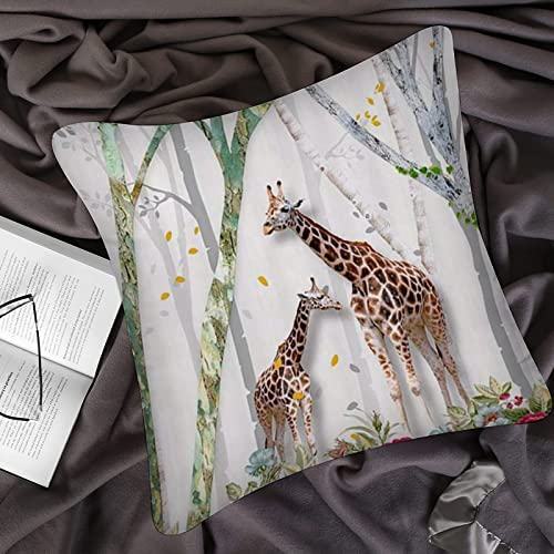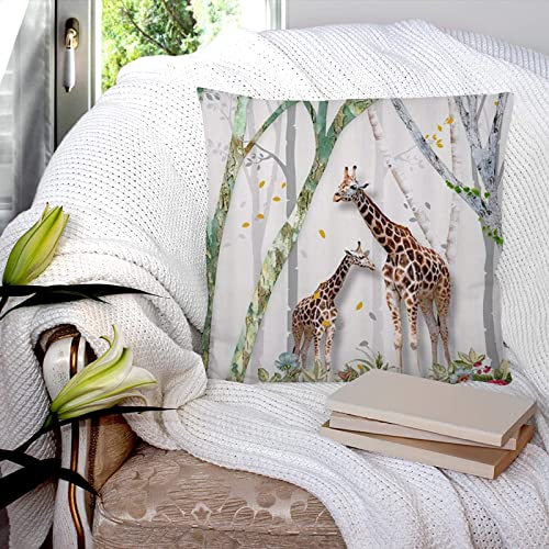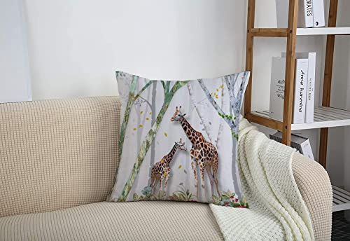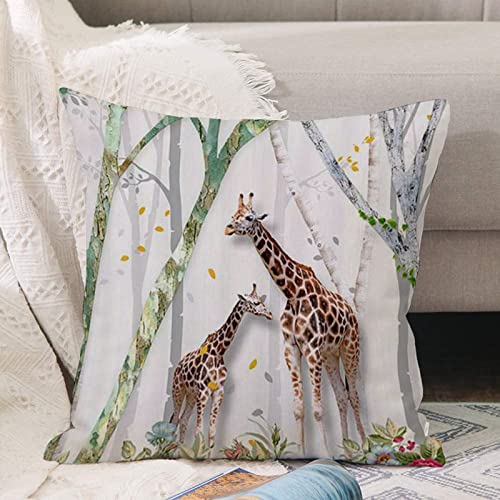 Kissenbezug 45×45 cm,Giraffen-Waldbaum-Blumen-wild lebende afrikanische Dschungel-Tiere,Outdoor Kissen Kissenbezüge Kissenhülle Sofa Kissen dekokissen Zierkissen für Wohnzimmer Garten deko draußen