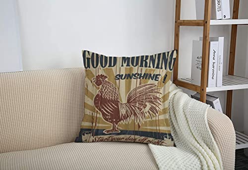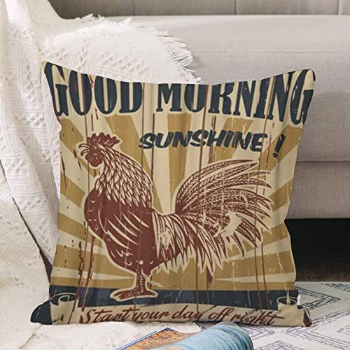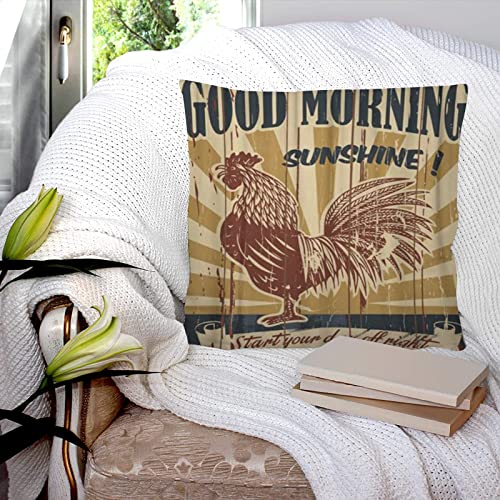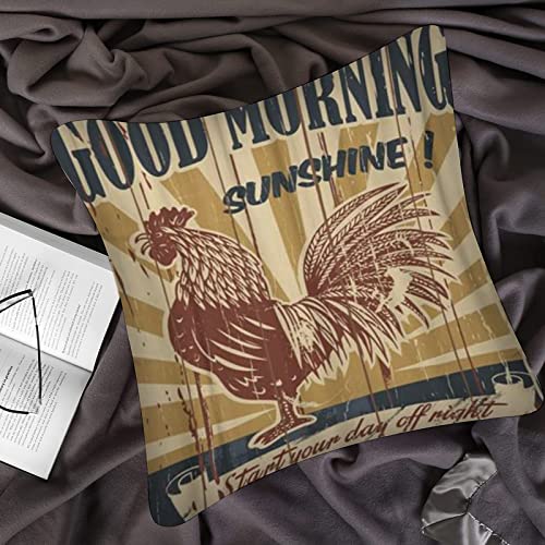 Kissenbezug 45×45 cm,Hähnchen Guten Morgen Sonnenschein Schild mit Zeichnung von Hahn Sonne,Outdoor Kissen Kissenbezüge Kissenhülle Sofa Kissen dekokissen Zierkissen für Wohnzimmer Garten deko draußen