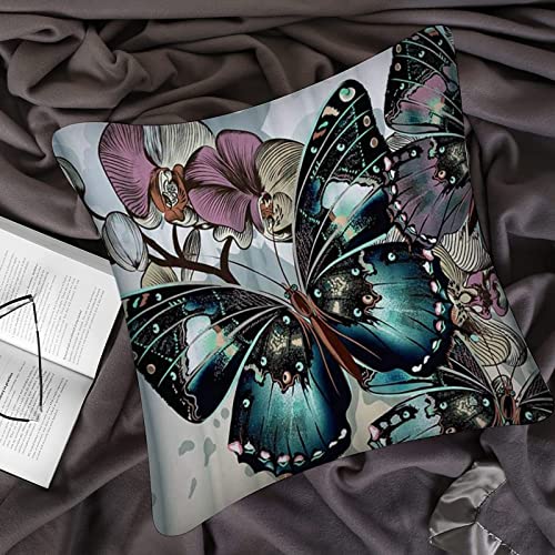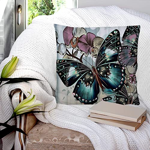Kissenbezug 45×45 cm,Schmetterlings-Blume Gemustert,Outdoor Kissen Kissenbezüge Kissenhülle Sofa Kissen dekokissen Zierkissen für Wohnzimmer Garten deko draußen