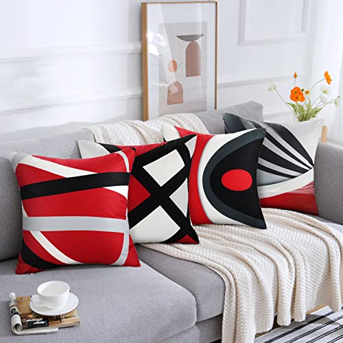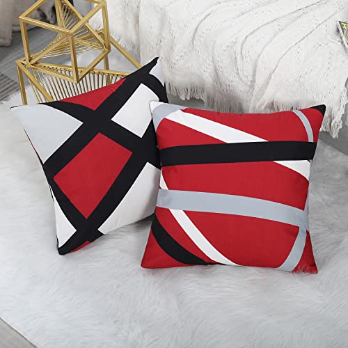 EXQUISITE DESIGN: Die Kissenbezüge drucken auf zwei Seiten abstraktes rot-schwarzes Streifenmuster, verwenden fortschrittliche Färbetechnologie, kein Ausbleichen, harmlos für die Haut, helle und festliche Farben, Farbbeständigkeit wird besser.Und mit verstecktem Reißverschluss, leicht zu abschaffen, kann für lange Zeit verwendet werden. Enge Zickzack-Übernähte, um ein Ausfransen und Reißen zu unterbinden.