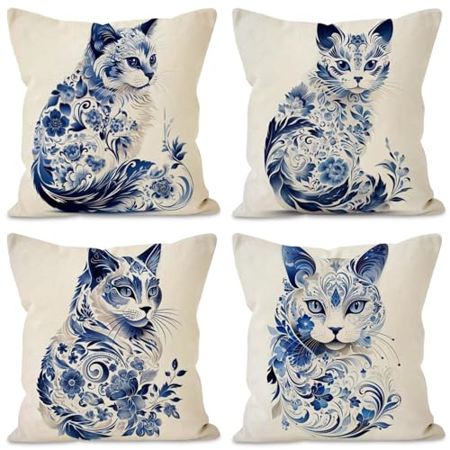 Kissenbezug 45x45cm 4er Set Leinen Dekokissen Kissenbezüge Sofakissen Outdoor Kissen Sofakissen für Sofa Schlafzimmer Gartenbett 45x45cm, Tier Druckerzeugnis Kissenhülle Couchkissen Kissenbezug 45×45 4er Set Grau Sofakissen Kissenhülle Couchkissen Jetzt Dekokissen Kissenbezüge Deko Kissen Bezug Wohnzimmer Zierkissen für Sofa Stuhl Bett Garten