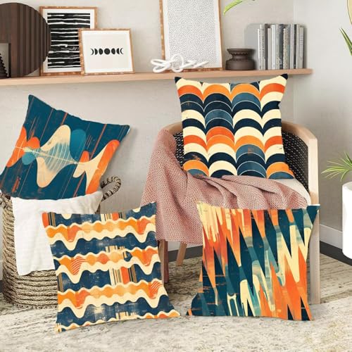 【Doppelseitiges Muster】: Neue 4 PCs Quadratkissenabdeckungen / Schalen, kein Füller oder Einsatz. Das Muster gedruckt auf beiden Seiten der Kissenabdeckung machen es einfacher für Sie, den Ort zu schmücken, den Sie mögen, können Sie es nach Wunsch platzieren, ohne nach der gemusterten Seite für Dekoration abgrasen zu müssen, es ist bequemer für Sie.