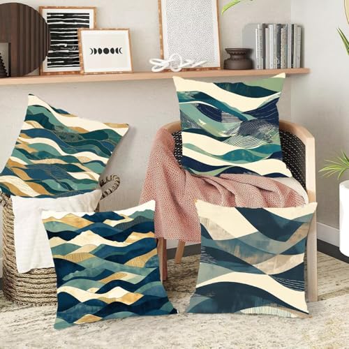 【Doppelseitiges Muster】: Neue 4 PCs Quadratkissenabdeckungen / Schalen, kein Füller oder Einsatz. Das Muster gedruckt auf beiden Seiten der Kissenabdeckung machen es einfacher für Sie, den Ort zu schmücken, den Sie mögen, können Sie es nach Wunsch platzieren, ohne nach der gemusterten Seite für Dekoration grasen zu müssen, es ist bequemer für Sie.