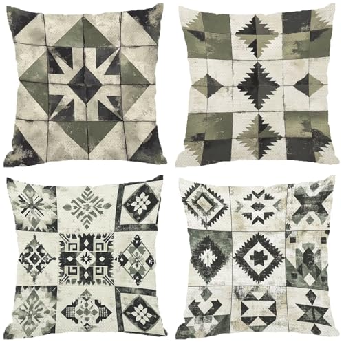 4er-Gesindel Kissenbezug (50x50cm) aus Leinen, quadratische Kissenbezug, florale Kissenbezug, Sofakissenbezug, gemusterte Kissenbezug für Wohnzimmer, Couch und Sofa.
