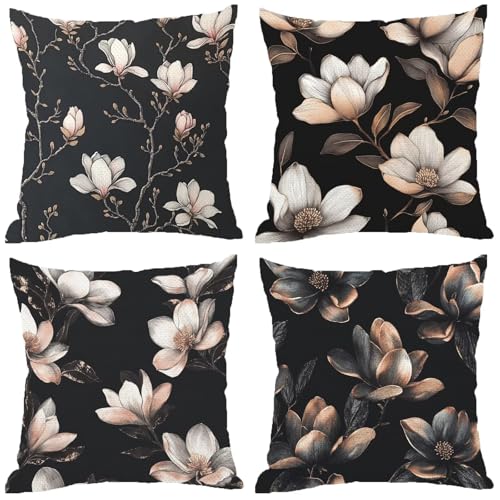 4er-Mob Kissenbezug (50x50cm) aus Leinen, quadratische Kissenbezug, florale Kissenbezug, Sofakissenbezug, gemusterte Kissenbezug für Wohnzimmer, Couch und Sofa.