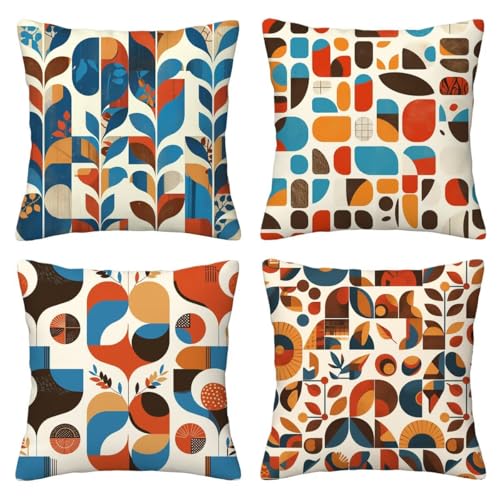 【DOPPELSEITIGES MUSTER】: Set von 4 quadratischen Kissenbezügen 50x50cm(20x20in) Keine Füllung oder Einsatz.Mit schickem Muster auf beiden Seiten, was es einfacher macht, zu dekorieren, ohne nach einer gemusterten Seite abgrasen zu müssen. Reißverschluss ist versteckt und glatt. Bitte erlauben Sie 1~2cm Aberration wegen des Handschneidens und Nähens
