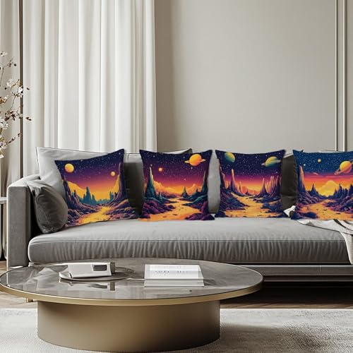 Kissenbezug 50×50 cm Landschaft Kissenbezüge Natur Samt Kissenhüllen 4er Set, Quadratische Kopfkissenbezug Dekokissen mit Unsichtbarer Reißverschluss, Kissenhülle für Sofakissen Deko Geschenke Y-48