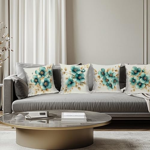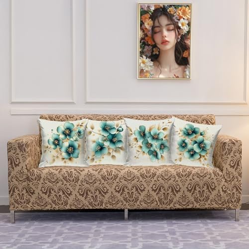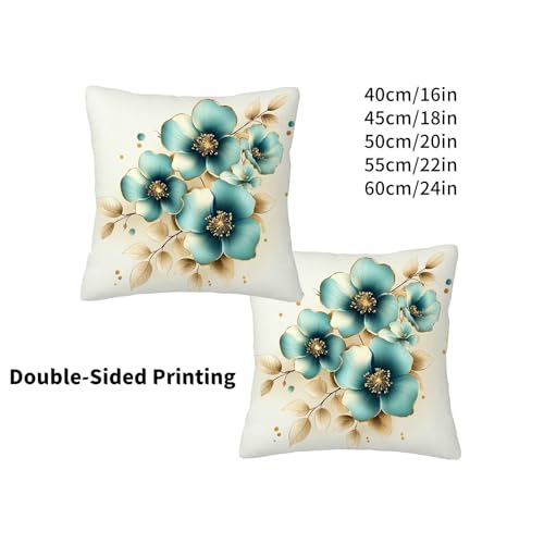 Kissenbezug 50×50 cm Petrol Kissenbezüge Blumen Samt Kissenhüllen 4er Set, Quadratische Kopfkissenbezug Dekokissen mit Unsichtbarer Reißverschluss, Kissenhülle für Deko Wohnzimmer Geschenke L-59