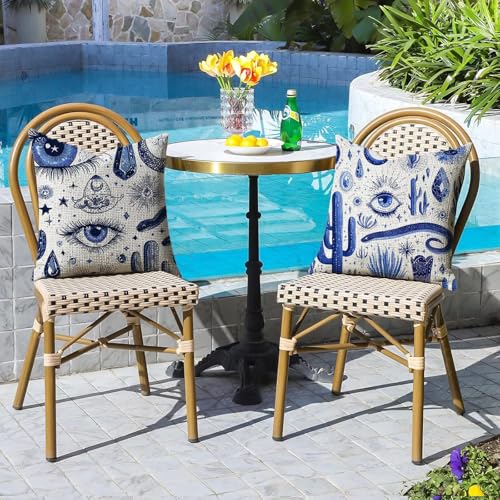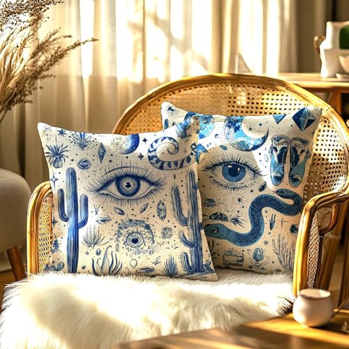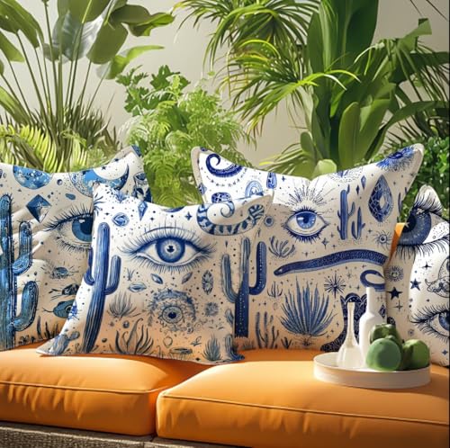 Kissenbezug 55×55 4er Set Blau Dekokissen Kissenbezüge Auge Kissenhülle Couchkissen Deko Outdoor Kissen Wetterfest Leinen Dekokissen Bezug für Sofa Schlafzimmer Wohnzimmer Balkon Gartendeko G9-451