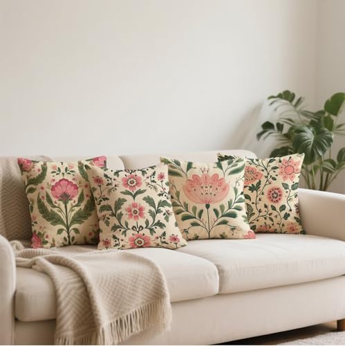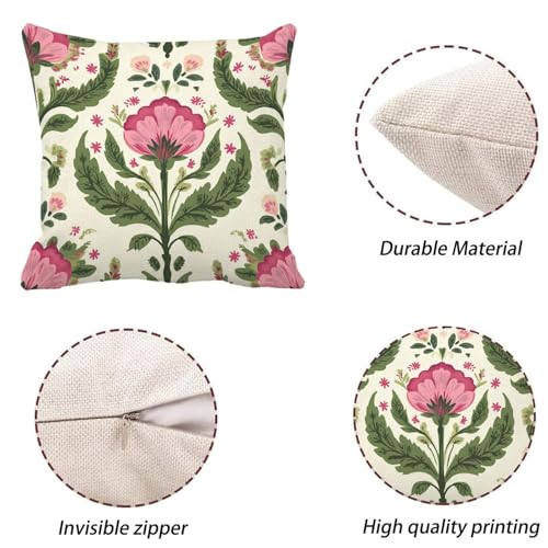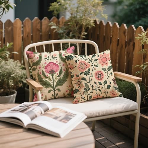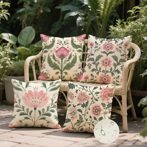 Kissenbezug 55×55 Rosa Outdoor Kissen Wetterfest Frühling Kissenbezüge Beige Dekokissen Leinen Outdoorkissen Couch Sitzkissen Bank Garten Sommer Outdoor Terrassen Balkon Deko Kissen 4er Set, k-840