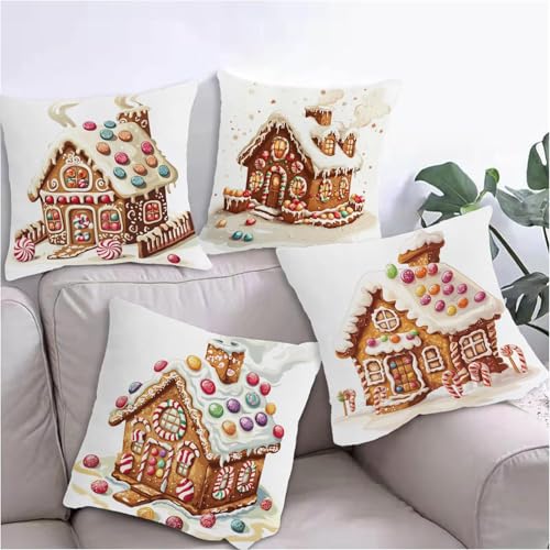 Kissenbezug 60×60 4er Set Kissenbezug Niedlich Dekokissenbezug Sofakissenbezug Samt Dekorative Weich Zierkissenbezug Moderne Dekokissen Kissenhülle für Schlafzimmer, Sofa, Stuhl, Bett, (Winter) D-82