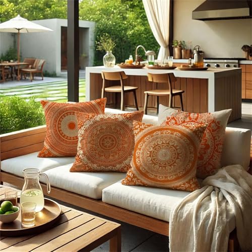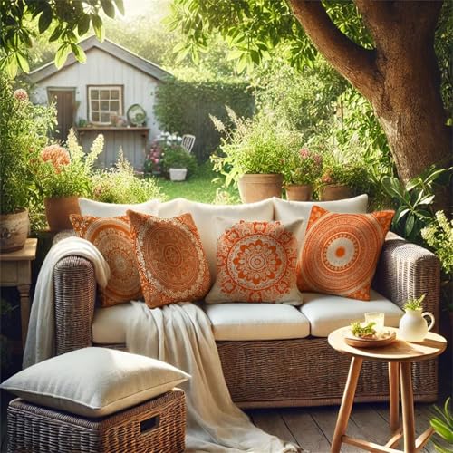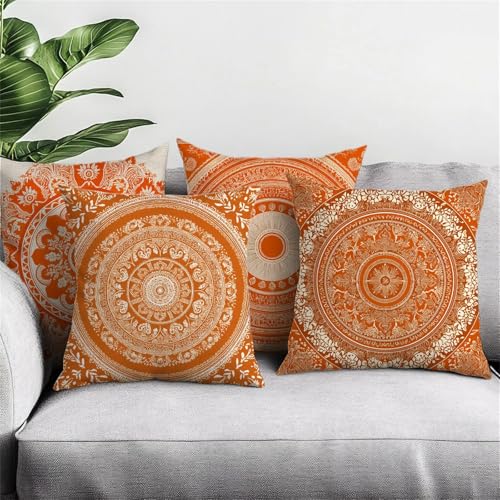 【KISSENBEZUG MIT DOPPELSEITIGEM DRUCKDESIGN】Mandala & Orange kissenbezug doppelseitiger hochauflösender druck. Sie müssen die position der kissenbezüge nicht drauf setzen, da sie überall schön aussehen