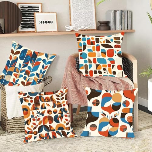 【Doppelseitiges Muster】: Neue 4 PCs Quadratkissenabdeckungen / Schalen, kein Füller oder Einsatz. Das Muster gedruckt auf beiden Seiten der Kissenabdeckung machen es einfacher für Sie, den Ort zu schmücken, den Sie mögen, können Sie es nach Wunsch platzieren, ohne nach der gemusterten Seite für Dekoration weiden zu müssen, es ist bequemer für Sie.
