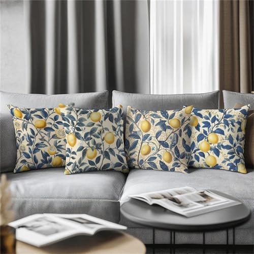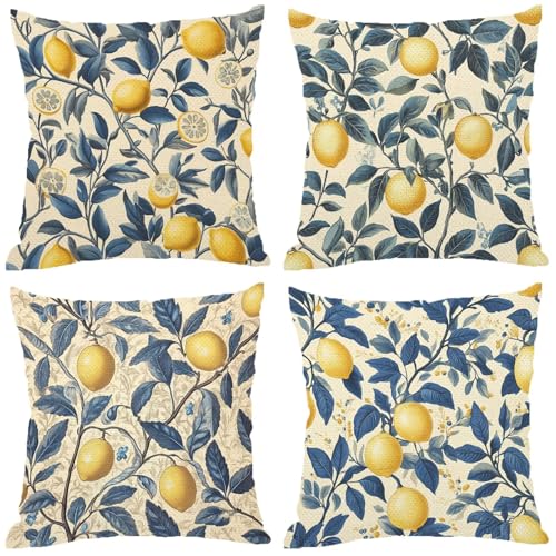 4er-Gesindel Kissenbezug (70x70cm) aus Leinen, quadratische Kissenbezug, florale Kissenbezug, Sofakissenbezug, gemusterte Kissenbezug für Wohnzimmer, Couch und Sofa.