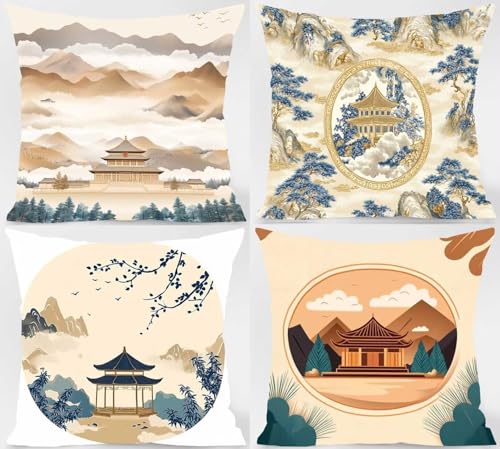 【DOPPELSEITIGES MUSTER】: 4 quadratische Kissenbezüge. Bitte berücksichtigen Sie, dass handkehrum ein Kissenbezug, keine Füllung oder Einlage enthalten ist. Das beidseitig bedruckte Muster ermöglicht es Ihnen, den Raum nach Belieben zu dekorieren und die gemusterte Seite nicht zu weiden. Das ist praktischer
