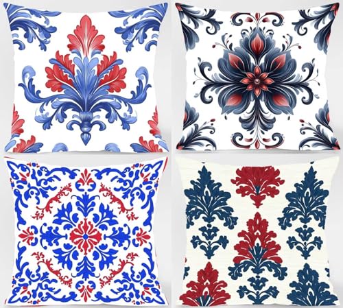 【DOPPELSEITIGES MUSTER】: 4 quadratische Kissenbezüge. Bitte anerkennen Sie, dass demgegenüber ein Kissenbezug, keine Füllung oder Einlage enthalten ist. Das beidseitig bedruckte Muster ermöglicht es Ihnen, den Raum nach Belieben zu dekorieren und die gemusterte Seite nicht zu forschen. Das ist praktischer
