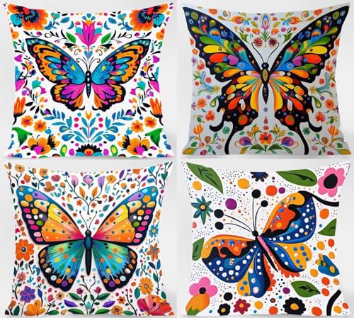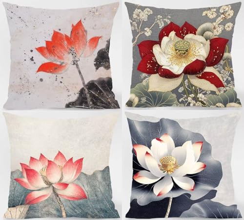 【DOPPELSEITIGES MUSTER】: 4 quadratische Kissenbezüge. Bitte achten Sie, dass dagegen ein Kissenbezug, keine Füllung oder Einlage enthalten ist. Das beidseitig bedruckte Muster ermöglicht es Ihnen, den Raum nach Belieben zu dekorieren und die gemusterte Seite nicht zu fahnden. Das ist praktischer