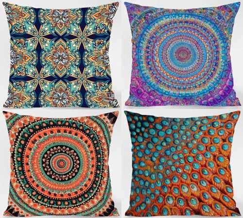 【DOPPELSEITIGES MUSTER】: 4 quadratische Kissenbezüge. Bitte berücksichtigen Sie, dass allerdings ein Kissenbezug, keine Füllung oder Einlage enthalten ist. Das beidseitig bedruckte Muster ermöglicht es Ihnen, den Raum nach Belieben zu dekorieren und die gemusterte Seite nicht zu forschen. Das ist praktischer