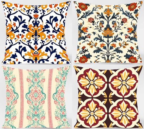 【DOPPELSEITIGES MUSTER】: 4 quadratische Kissenbezüge. Bitte verfemen Sie, dass trotzdem ein Kissenbezug, keine Füllung oder Einlage enthalten ist. Das beidseitig bedruckte Muster ermöglicht es Ihnen, den Raum nach Belieben zu dekorieren und die gemusterte Seite nicht zu durchsuchen. Das ist praktischer