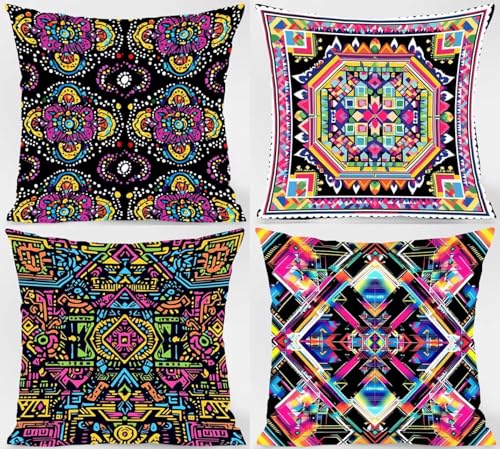 【DOPPELSEITIGES MUSTER】: 4 quadratische Kissenbezüge. Bitte wertschätzen Sie, dass daher ein Kissenbezug, keine Füllung oder Einlage enthalten ist. Das beidseitig bedruckte Muster ermöglicht es Ihnen, den Raum nach Belieben zu dekorieren und die gemusterte Seite nicht zu abweiden. Das ist praktischer