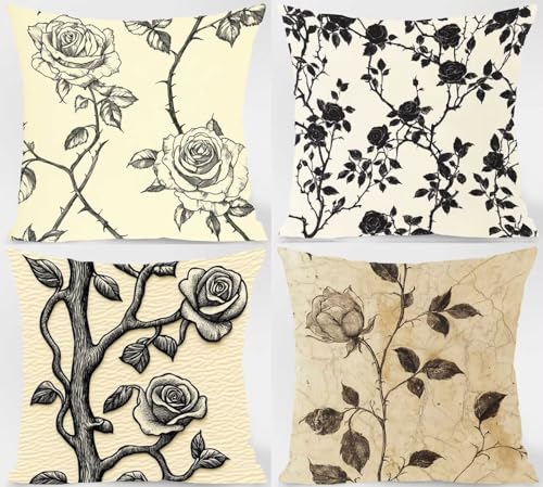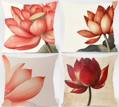 【DOPPELSEITIGES MUSTER】: 4 quadratische Kissenbezüge. Bitte anerkennen Sie, dass daher ein Kissenbezug, keine Füllung oder Einlage enthalten ist. Das beidseitig bedruckte Muster ermöglicht es Ihnen, den Raum nach Belieben zu dekorieren und die gemusterte Seite nicht zu durchsuchen. Das ist praktischer