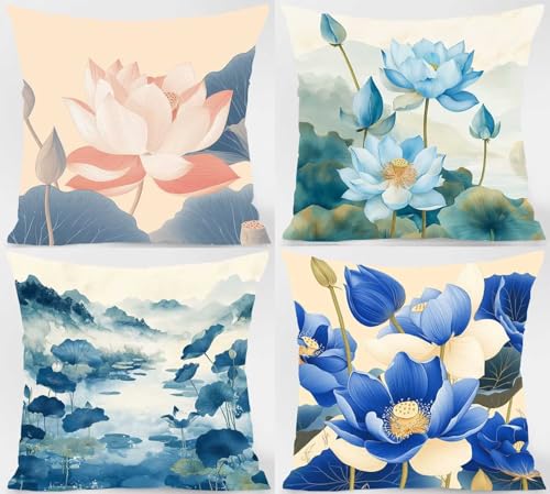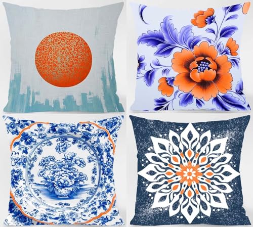 【DOPPELSEITIGES MUSTER】: 4 quadratische Kissenbezüge. Bitte schätzen Sie, dass ungeachtet ein Kissenbezug, keine Füllung oder Einlage enthalten ist. Das beidseitig bedruckte Muster ermöglicht es Ihnen, den Raum nach Belieben zu dekorieren und die gemusterte Seite nicht zu abgrasen. Das ist praktischer