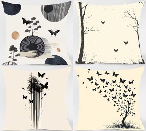 【DOPPELSEITIGES MUSTER】: 4 quadratische Kissenbezüge. Bitte berücksichtigen Sie, dass freilich ein Kissenbezug, keine Füllung oder Einlage enthalten ist. Das beidseitig bedruckte Muster ermöglicht es Ihnen, den Raum nach Belieben zu dekorieren und die gemusterte Seite nicht zu weiden. Das ist praktischer