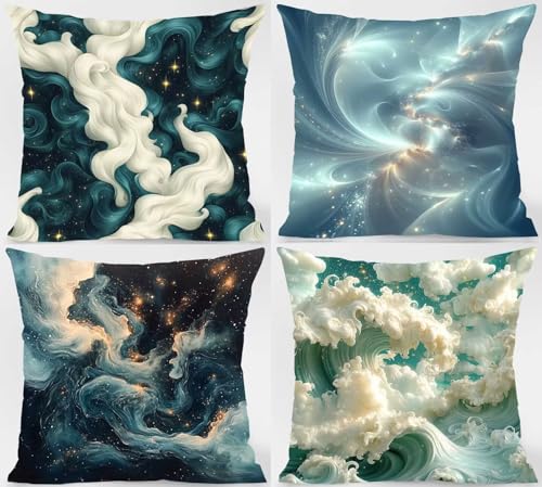 【DOPPELSEITIGES MUSTER】: 4 quadratische Kissenbezüge. Bitte würdigen Sie, dass daher ein Kissenbezug, keine Füllung oder Einlage enthalten ist. Das beidseitig bedruckte Muster ermöglicht es Ihnen, den Raum nach Belieben zu dekorieren und die gemusterte Seite nicht zu weiden. Das ist praktischer