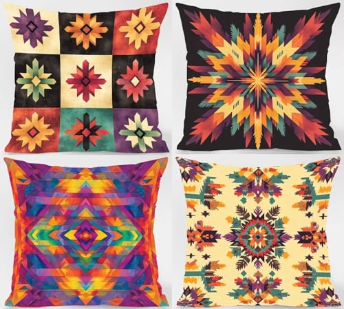 【DOPPELSEITIGES MUSTER】: 4 quadratische Kissenbezüge. Bitte akzeptieren Sie, dass daher ein Kissenbezug, keine Füllung oder Einlage enthalten ist. Das beidseitig bedruckte Muster ermöglicht es Ihnen, den Raum nach Belieben zu dekorieren und die gemusterte Seite nicht zu weiden. Das ist praktischer