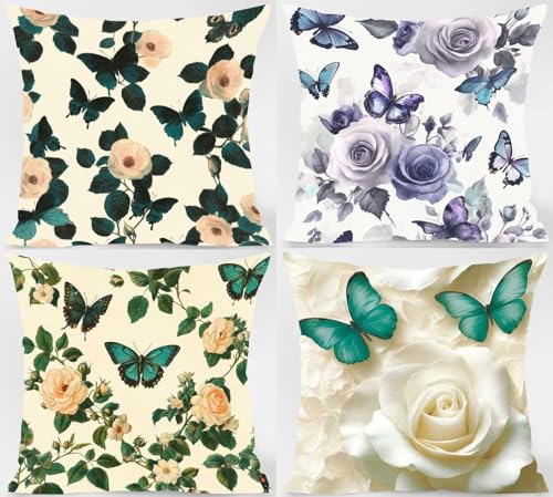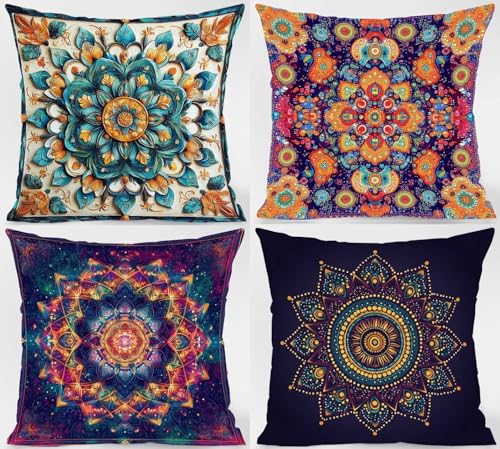 【DOPPELSEITIGES MUSTER】: 4 quadratische Kissenbezüge. Bitte wertschätzen Sie, dass jedoch ein Kissenbezug, keine Füllung oder Einlage enthalten ist. Das beidseitig bedruckte Muster ermöglicht es Ihnen, den Raum nach Belieben zu dekorieren und die gemusterte Seite nicht zu fahnden. Das ist praktischer